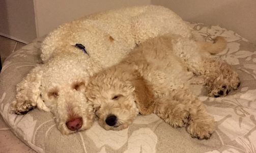 They are a cross between a golden retriever & a poodle.